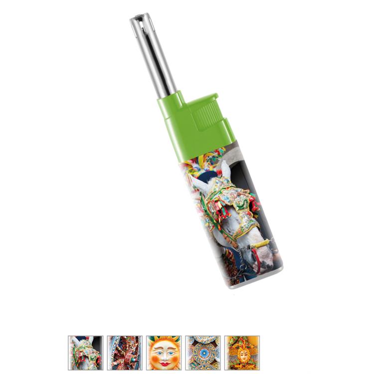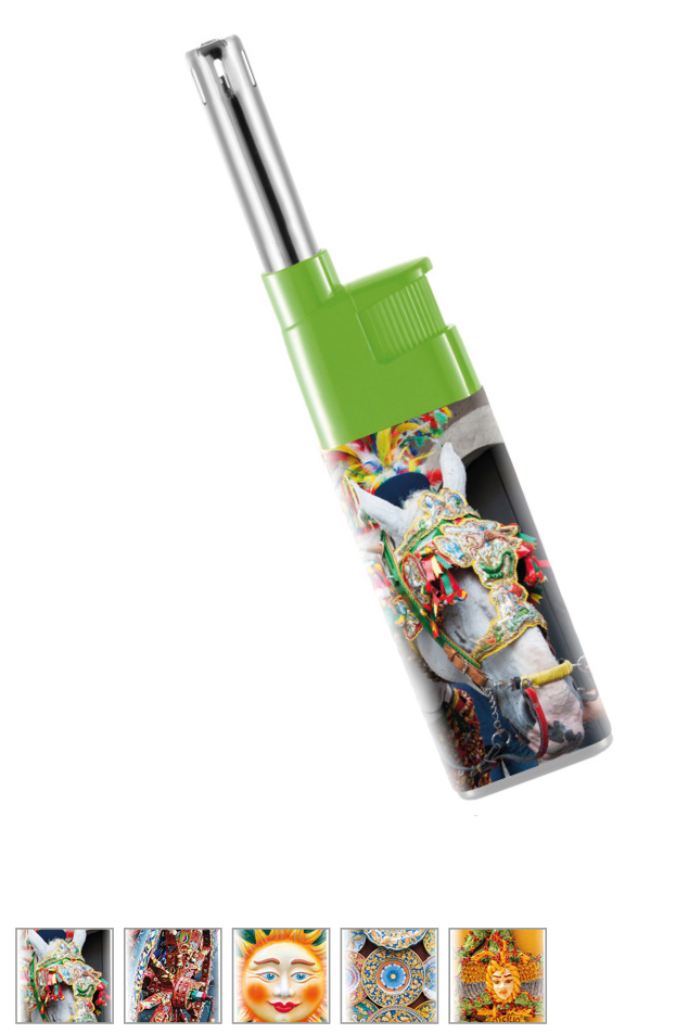Questo accendino firmato GMR è un accessorio che celebra l'estetica vibrante della tradizione siciliana. Si tratta di un accendino multiuso a canna lunga, ideale per accendere fornelli, candele o barbecue in totale sicurezza.