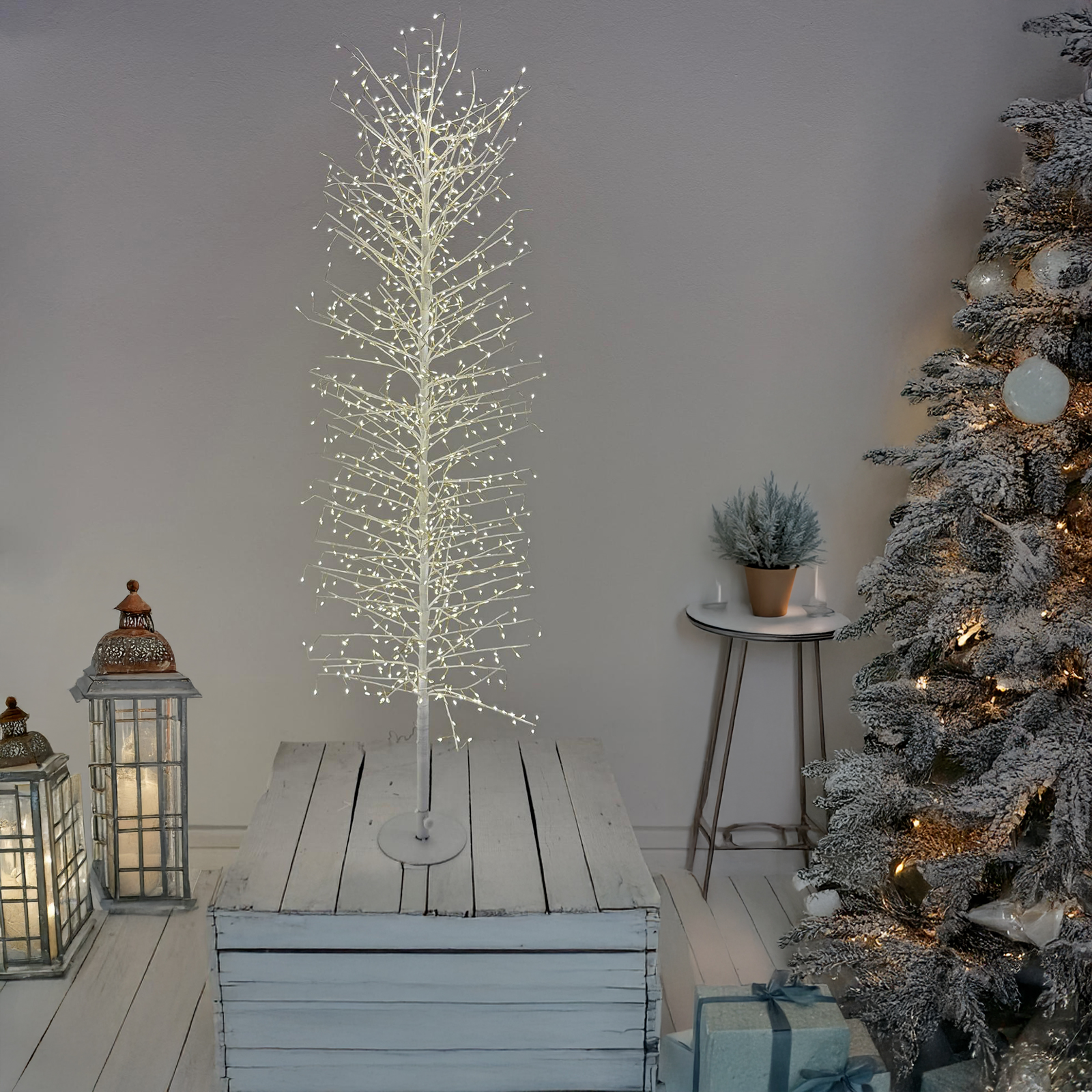 La sua peculiarità risiede nella straordinaria illuminazione: 1080 MicroLED a bianco caldo sono distribuiti con cura su rami modellabili, rendendolo un vero e proprio albero di natale con luci incorporate. I MicroLED da 1,5mm, abbinati a cavi in metallo color Argento Metal Silver, scompaiono quasi alla vista, lasciando risaltare solo la pura luminosità. L'effetto FlashLED Diamond, che combina luci fisse e un lampeggio veloce ("flash"), crea un dinamismo discreto e sofisticato. Questo albero di natale con luci led non è solo un addobbo, ma un elemento di design capace di creare un punto focale luminoso in qualsiasi ambiente, sia interno che esterno riparato.