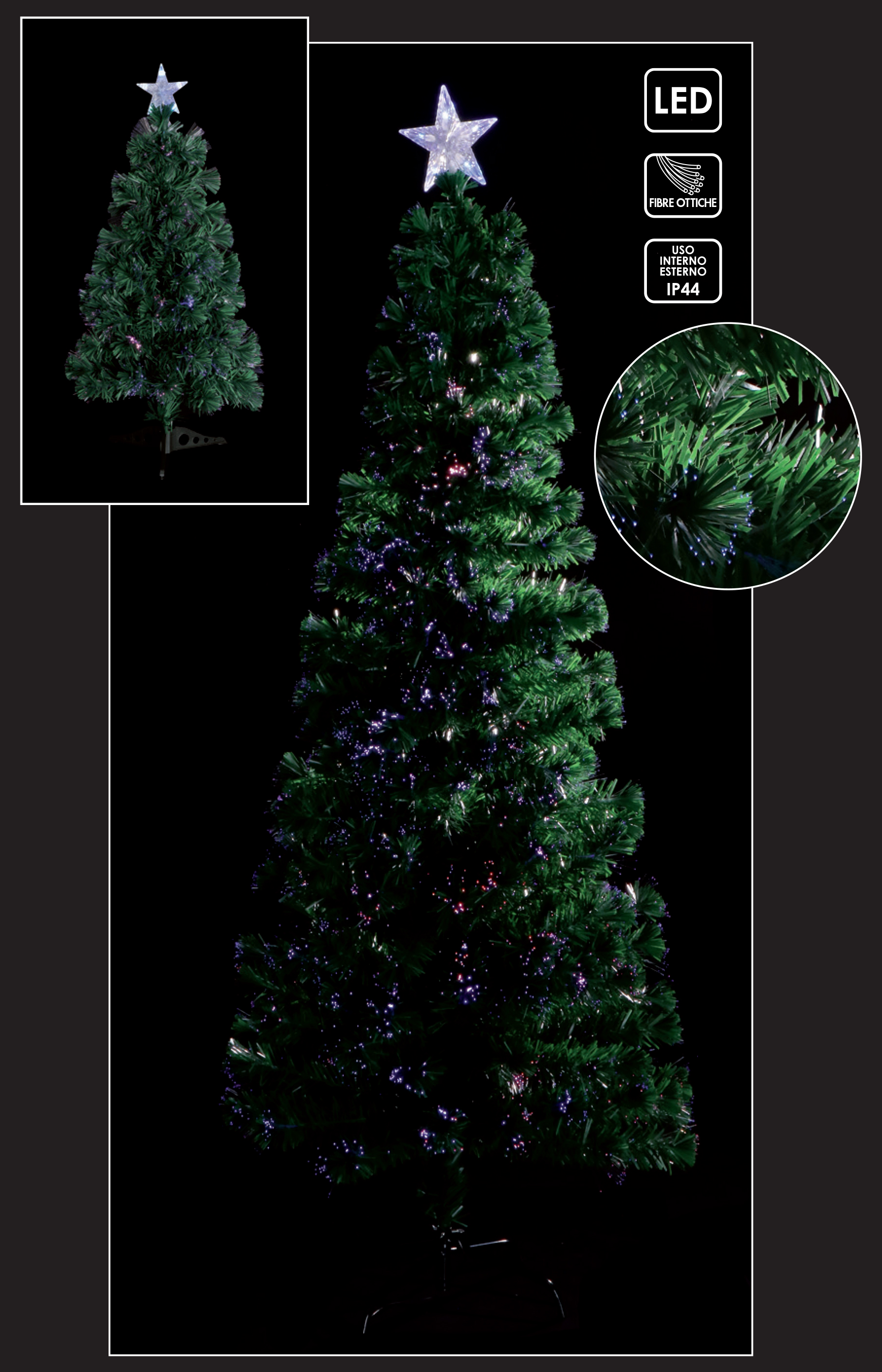 ALBERO DI NATALE IN FIBRA OTTICA CON LUCI LED 150 CM MAKALU