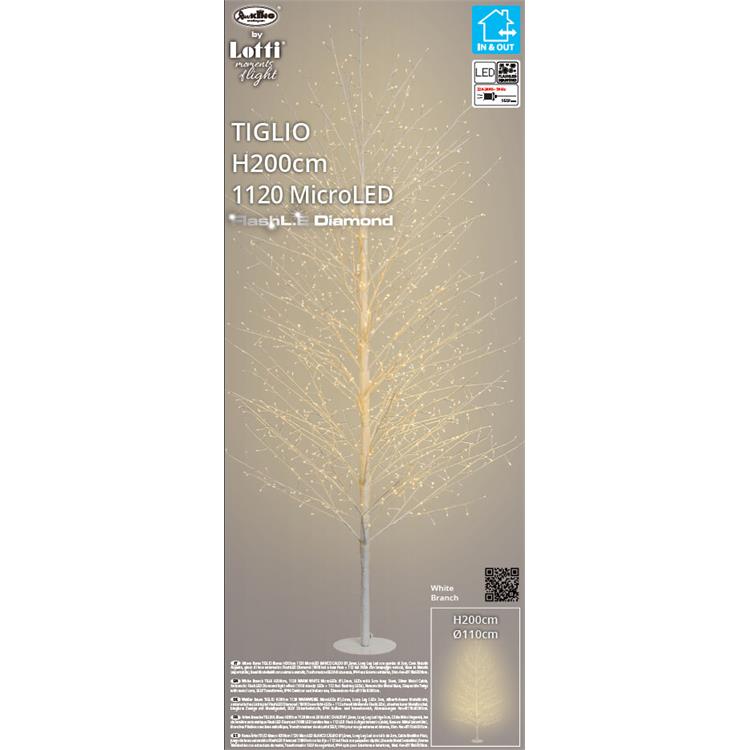 ALBERO LUMINOSO LED CON RAMI SECCHI - TIGLIO BIANCO - LED BIANCO CALDO - H200 CM 1120 MICROLED