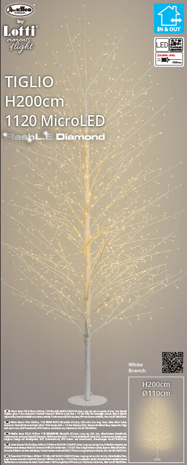 I rami luminosi sono dotati di 1120 MicroLED BIANCO CALDO che creano un'atmosfera calda e accogliente, perfetta per ogni ambiente. La tecnologia FlashLED Diamond garantisce un gioco di luci affascinante, con 1008 LED a luce fissa e 112 LED Flash con lampeggio veloce.
