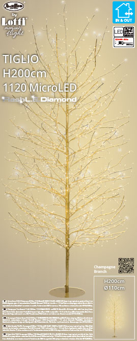 ALBERO LUMINOSO LED CON RAMI SECCHI - TIGLIO CHAMPAGNE - LED BIANCO CALDO - H200 CM 1120 MICROLED