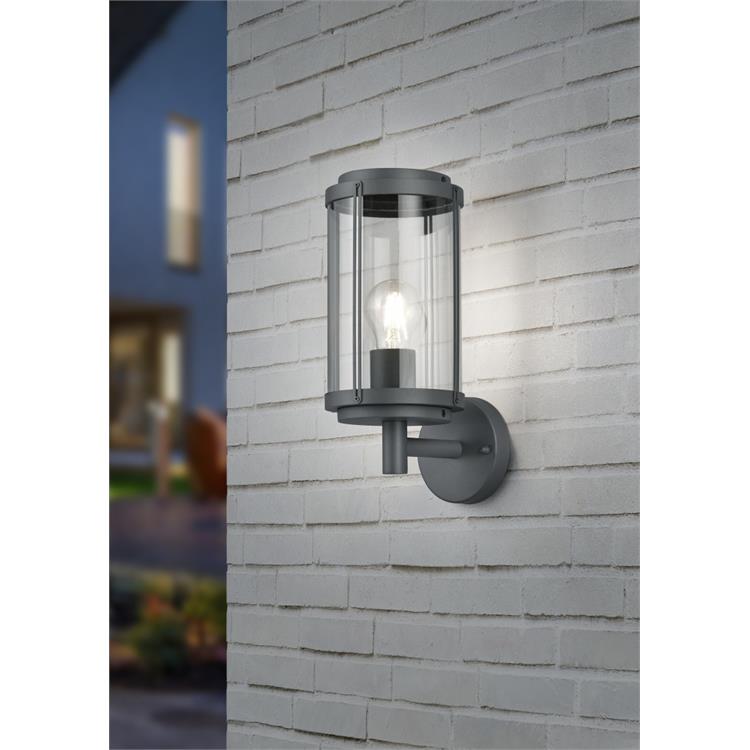 Una lampada da parete di qualità si osserva anche dai dettagli: il vetro trasparente diffonde una luce piacevole e soffusa, creando un'atmosfera accogliente e suggestiva. Tanaro è molto più di una semplice lampada: è un elemento decorativo che valorizza qualsiasi ambiente esterno. L'elegante colorazione antracite in combinazione con il vetro trasparente rende l'applique un vero e proprio richiamo visivo e assicura un aspetto moderno.