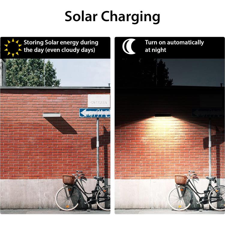 Le lampade solari da esterno sono alimentate da un pannello solare che converte l'energia solare in energia elettrica durante il giorno. Questa energia viene immagazzinata in una batteria interna che alimenta la lampada durante la notte o in condizioni di scarsa luminosità.