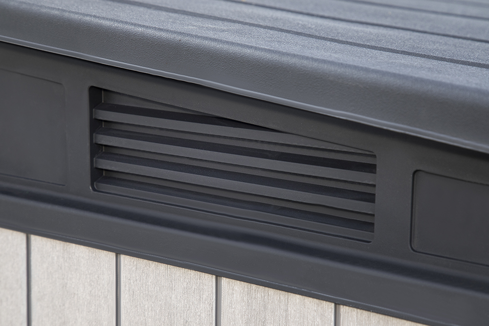 Le cerniere in metallo permettono un'apertura completa a 110 gradi, facilitando l'accesso all'ampio spazio interno, mentre i pistoni sul coperchio garantiscono un'apertura senza sforzo.