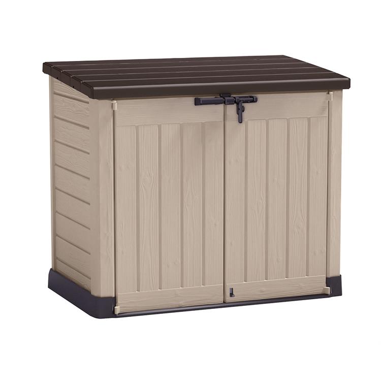 - Armadio porta attrezzi da giardino in resina con finitura effetto legno
