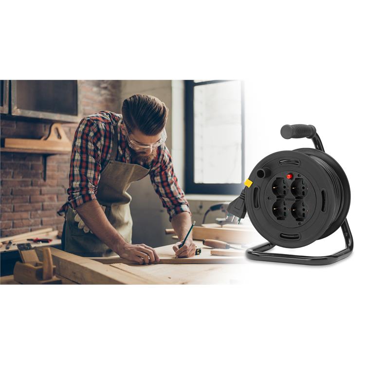 Dotato di 4 prese universali 16A, questa prolunga elettrica professionale ti permette di alimentare contemporaneamente diversi utensili elettrici, come trapani, smerigliatrici e seghe circolari, senza preoccuparti di sovraccarichi.