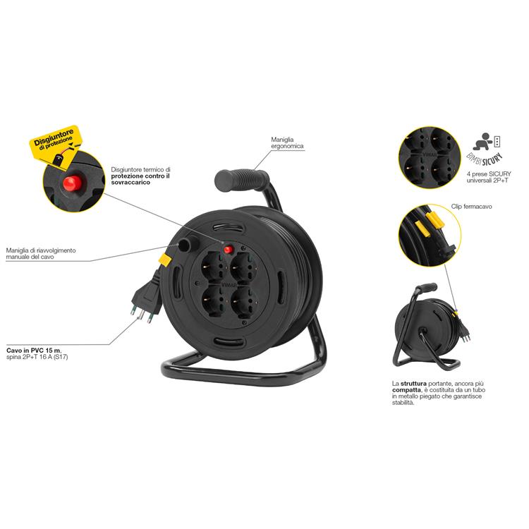 AVVOLGICAVO 16A 4 USCITE UNIVERSALI 15MT VIMAR