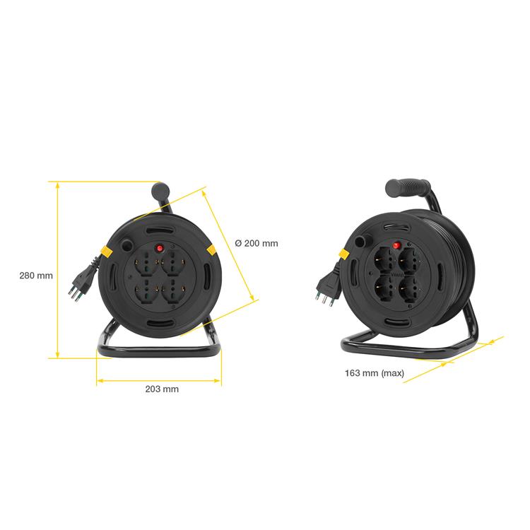 - Potenza massima prelevabile con cavo completamente avvolto 1200 W 230 V~, con cavo completamente svolto 2000 W 230 V~