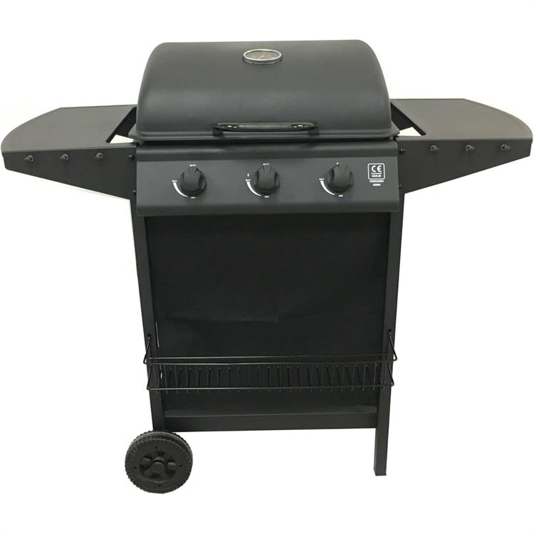 BARBECUE A GAS 3 FUOCHI "THOMAS" CON GRIGLIA E COPERCHIO - NERO