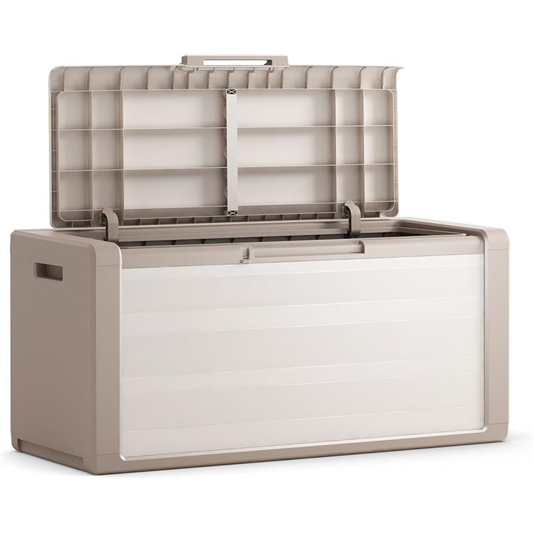 Grazie alla sua capienza di 300 litri, il baule cassapanca Gulliver è ideale per riporre una vasta gamma di oggetti, dai cuscini e le coperte ai giocattoli e gli attrezzi da giardino. La presenza di una predisposizione per il lucchetto garantisce la massima sicurezza dei tuoi oggetti.