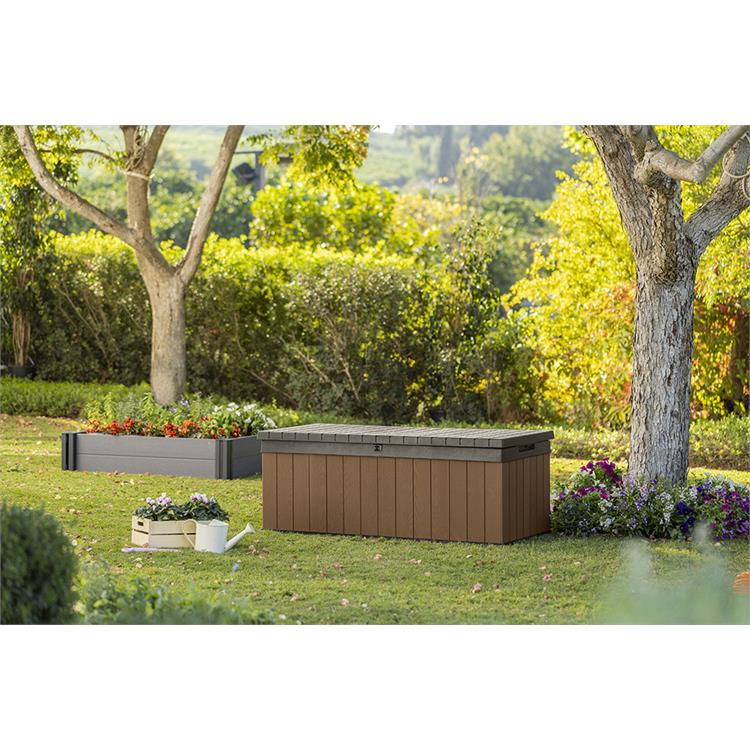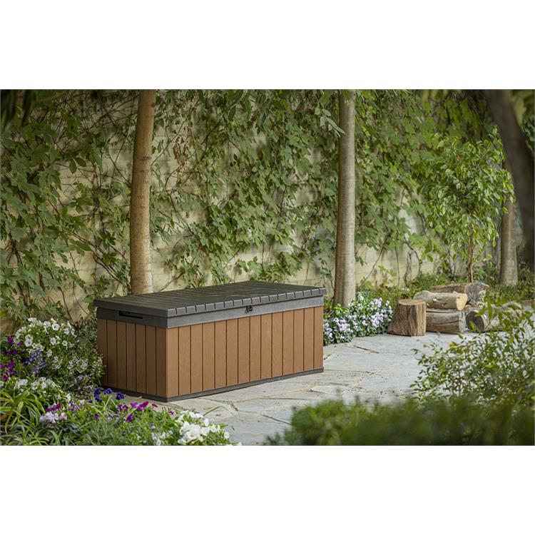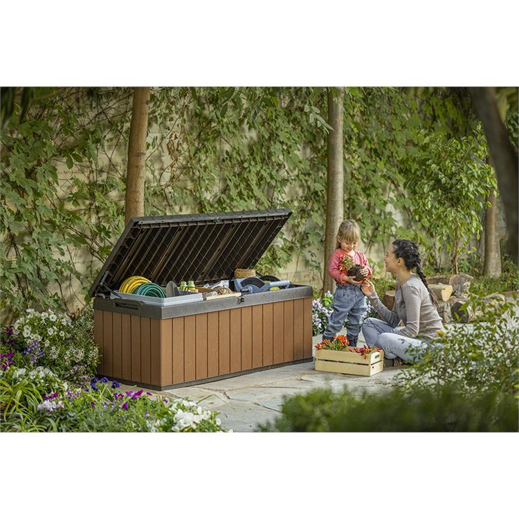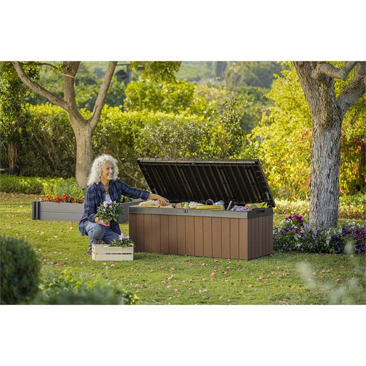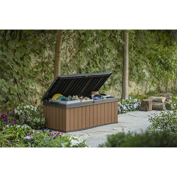 Il baule dispone di una capienza di 380 litri, ideale per riporre cuscini, attrezzi da giardino, giocattoli o qualsiasi altro oggetto desideri tenere in ordine e al sicuro.