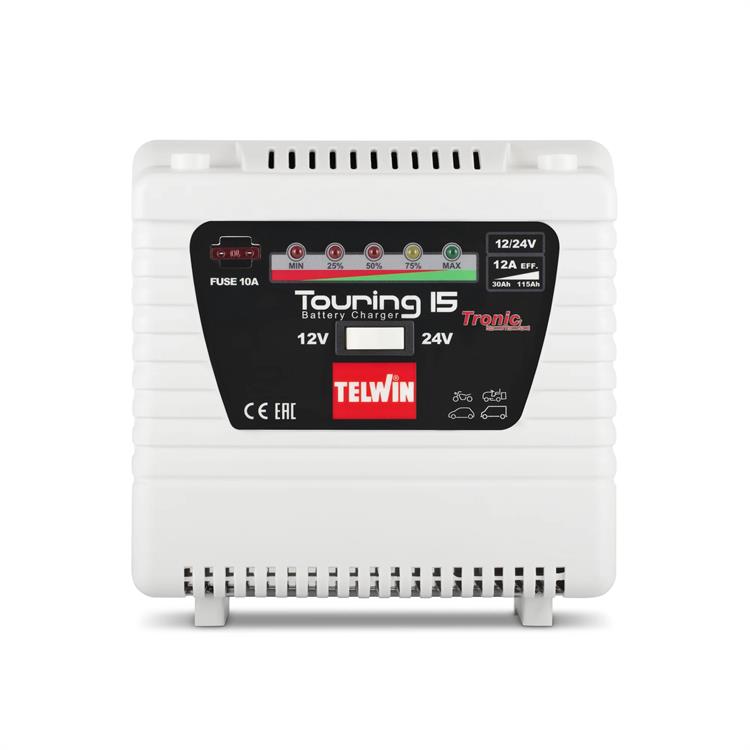 Telwin TOURING 15 si presenta come un caricabatterie versatile e affidabile, ideale per chi necessita di ricaricare batterie con voltaggio a 12V o 24V. Questo strumento compatto, marchiato Telwin, è progettato per un utilizzo pratico e intuitivo. Nonostante non disponga della funzione mantenitore di carica, la sua potenza assorbita in carica di 130 W garantisce un processo di ricarica efficiente per batterie con una capacità min-max che spazia dai 30Ah ai 55Ah. La corrente di carica efficace di 6,5 A permette di ripristinare l'energia delle tue batterie in tempi ragionevoli, rendendolo un compagno ideale per la manutenzione dei tuoi veicoli o attrezzature. La sua semplicità d'uso lo rende accessibile anche a chi non ha particolare esperienza nel settore.