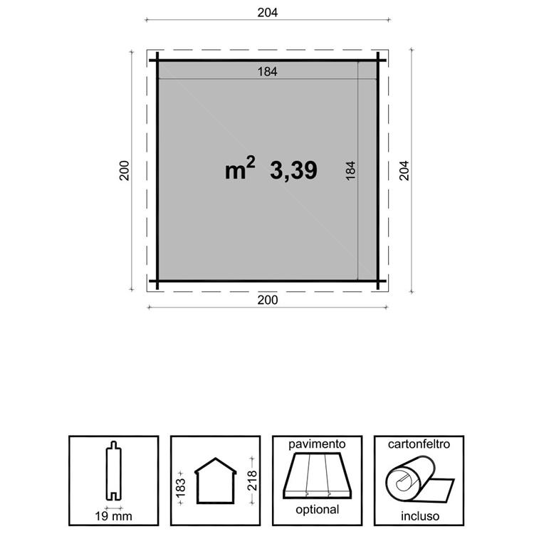 CASETTA DA GIARDINO IN LEGNO BIRBA 200X200CM