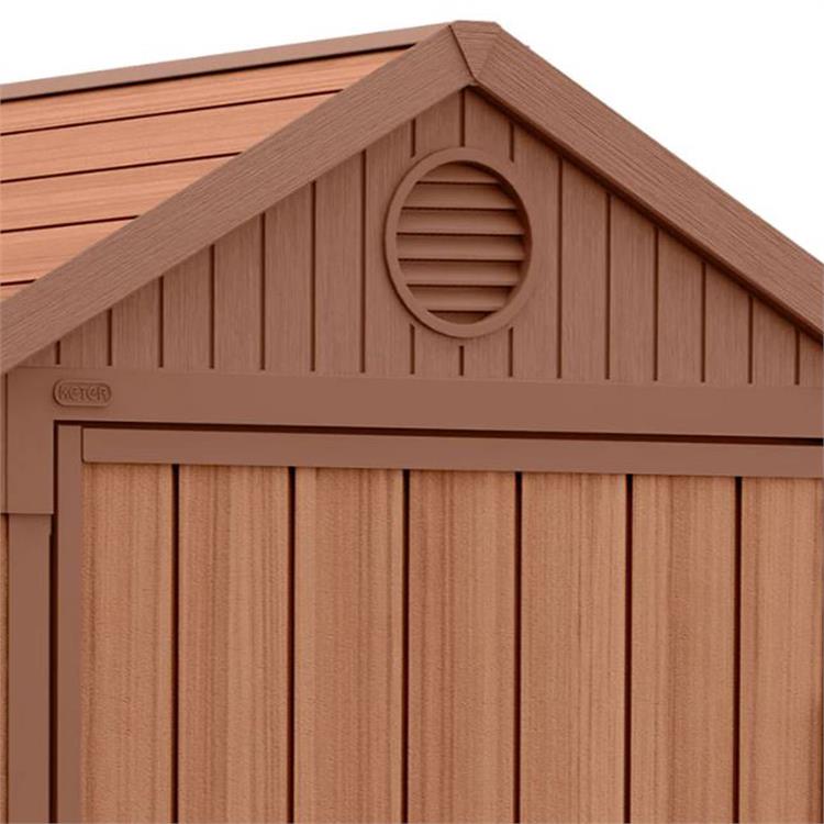 Realizzata in EVOTECH, un materiale innovativo che abbina l'estetica del legno alla massima resistenza agli agenti atmosferici, la casetta Darwin è perfetta per qualsiasi ambiente esterno. Il suo elegante effetto legno rustico darà un tocco originale al tuo giardino.