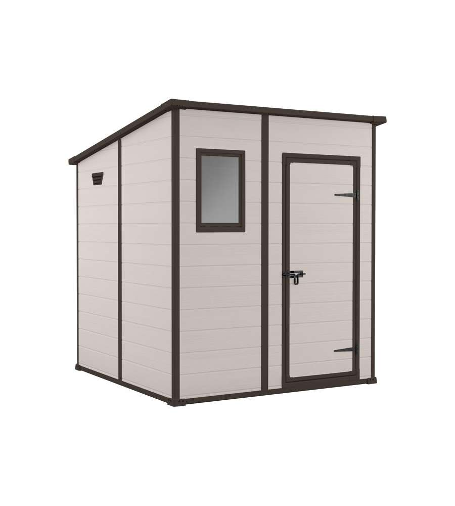 Acquista ora la casetta da giardino Keter Manor Pent 6x6 Beige e goditi il comfort di uno spazio esterno organizzato e funzionale!