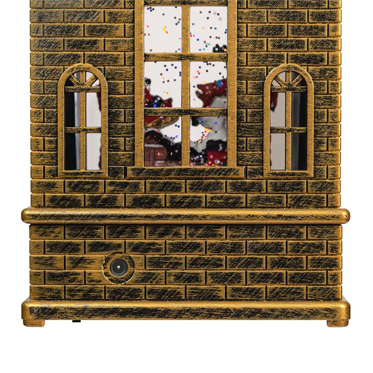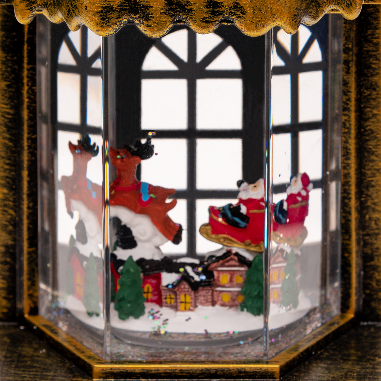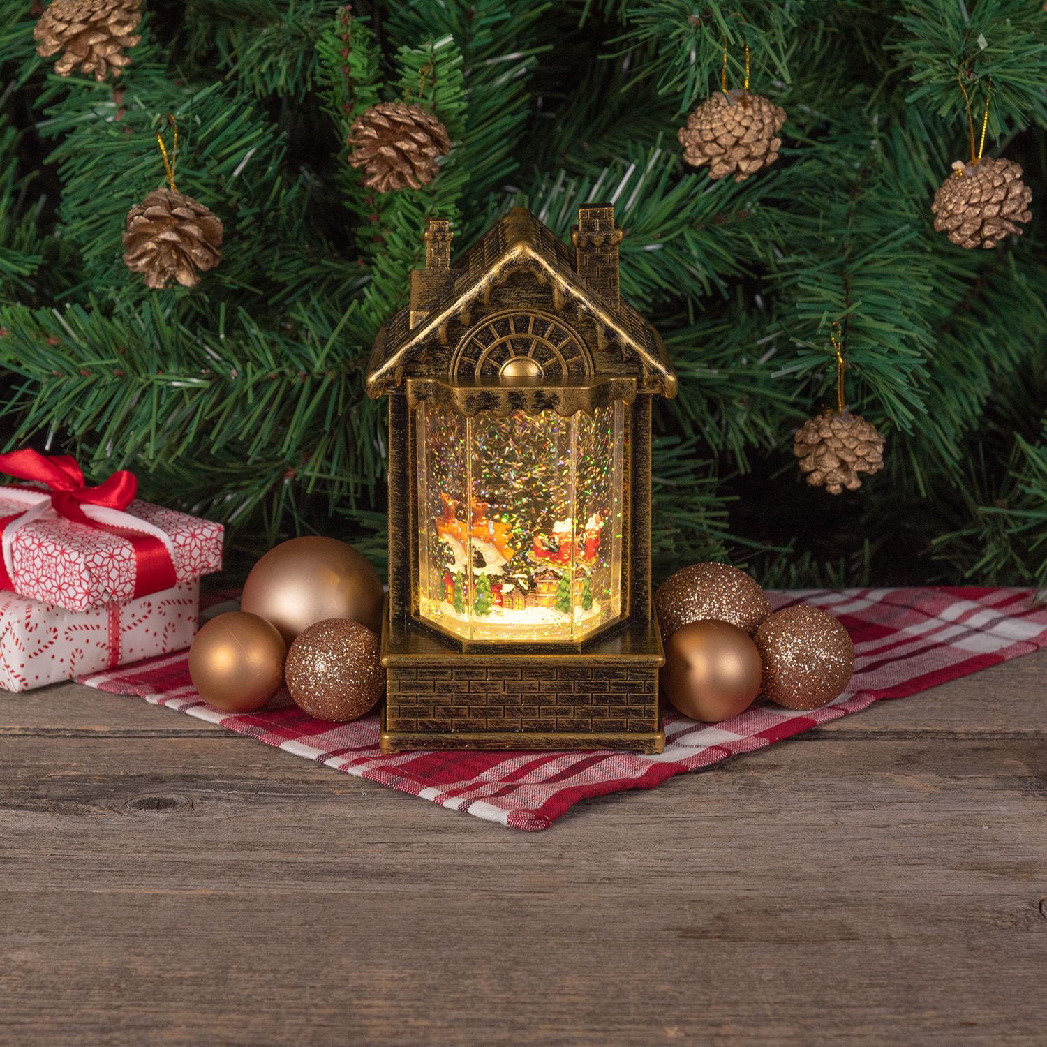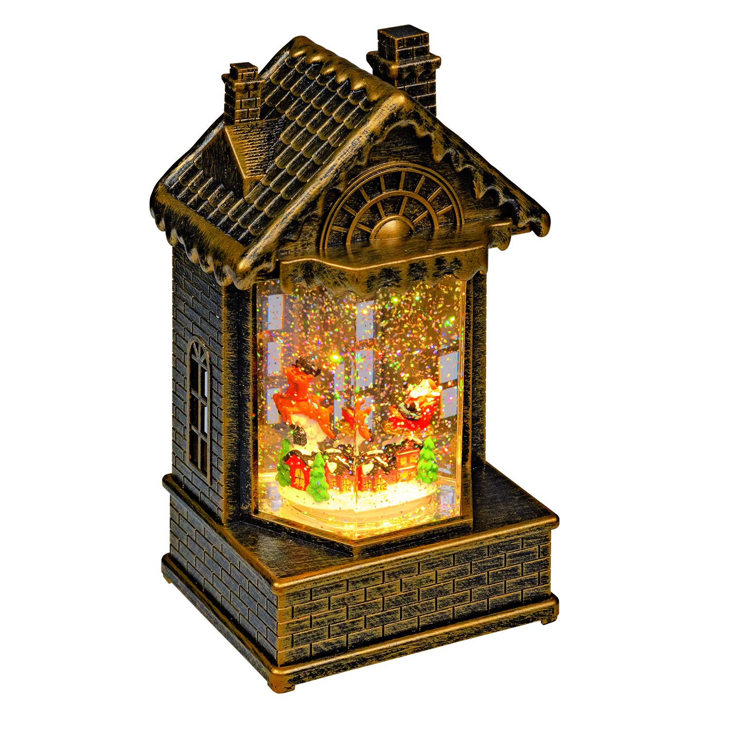LANTERNA NATALIZIA A BATTERIA - CASETTA DI NATALE - BRUNITA - CON GLITTER, MUSICA E LED BIANCO CALDO