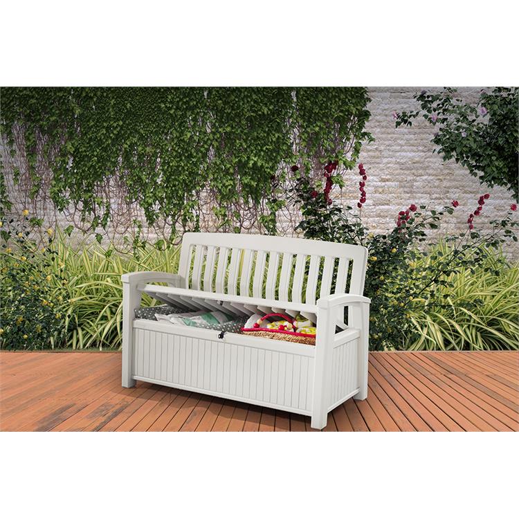 La sua ampia capacità di 227 litri offre una soluzione ideale per organizzare e riporre oggetti in modo ordinato, come cuscini, giocattoli, attrezzi da giardino o accessori per il tempo libero. Il vano contenitore è dotato di un sistema di chiusura lucchettabile che garantisce la sicurezza del contenuto, proteggendolo da agenti atmosferici, polvere e furti.