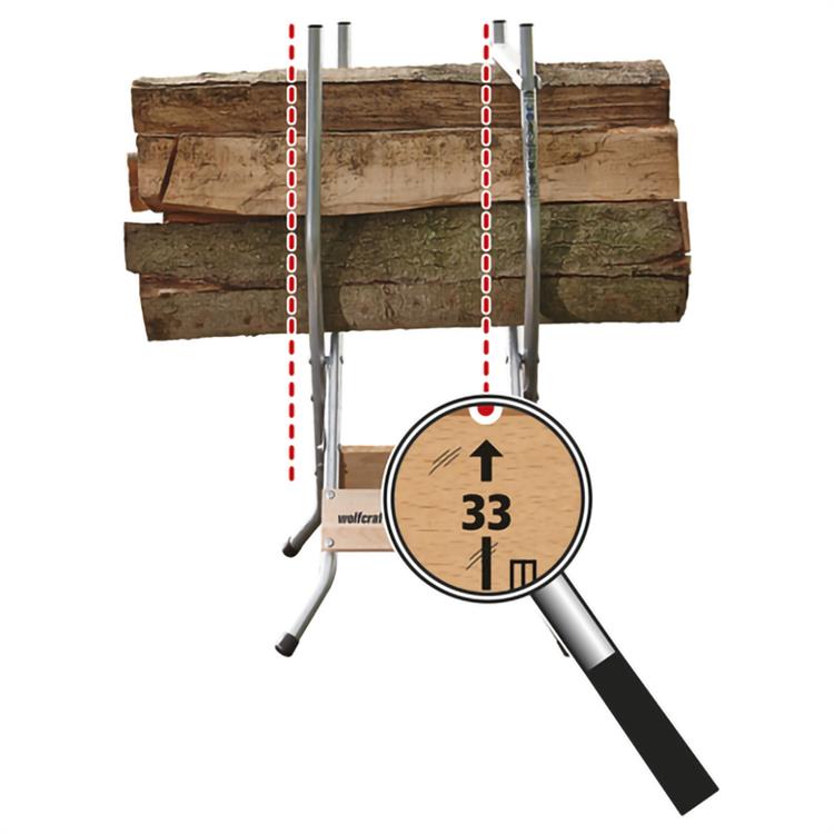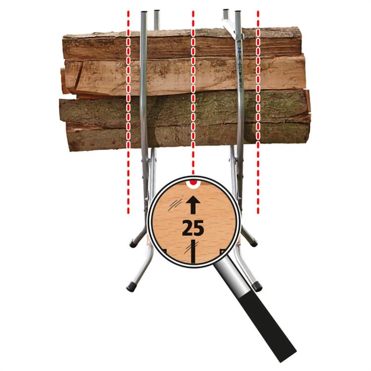 Precisione e velocità di taglio: Questo utile cavalletto per motosega è il complemento perfetto per il tuo utensile da lavoro: con una sola operazione consente di tagliare più ceppi di legno da 1,00 m in pezzi da 25 o 33 cm di lunghezza.