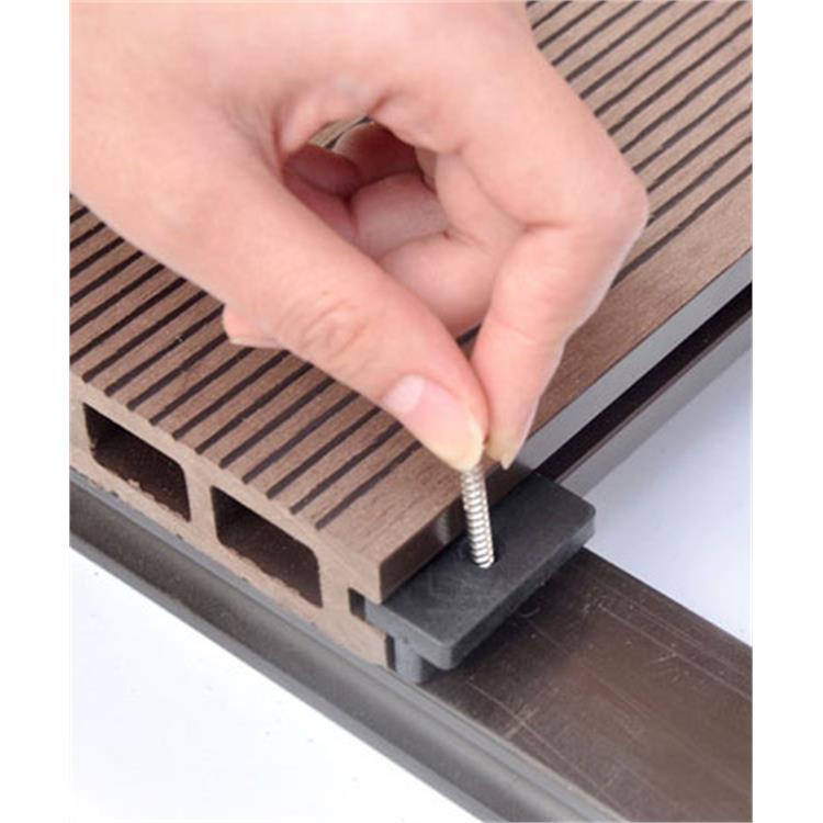 Grazie al sistema a scomparsa, queste clip evitano il fissaggio diretto con vite passante, prevenendo danni al WPC dovuti alle naturali dilatazioni termiche del materiale. Inoltre, ogni clip assicura uno spazio di fuga di circa 5/6 mm tra le doghe, favorendo il drenaggio dell’acqua e una finitura estetica impeccabile.
