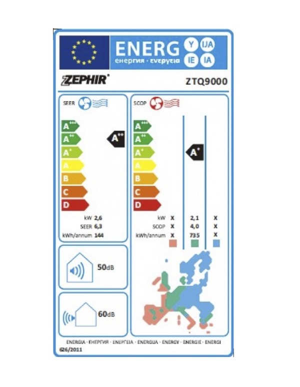 - Classificazione energetica A++ per il raffreddamento e A+ per il riscaldamento