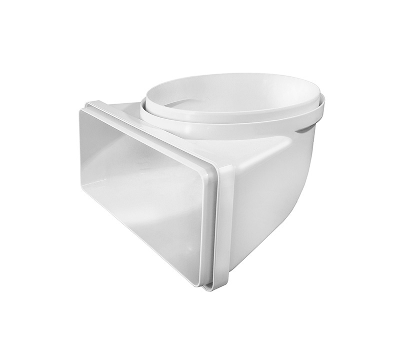 La curva verticale da tubo tondo Ø 125 a rettangolare 150x70 mm è un accessorio fondamentale per il sistema di aerazione, permettendo una rapida evacuazione di vapori e odori sgradevoli da ambienti come cucina e bagni.