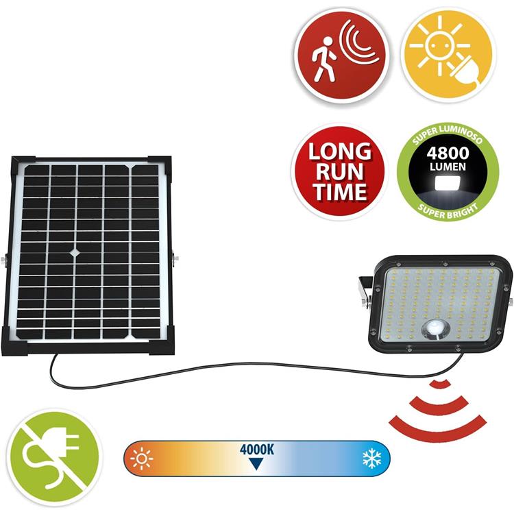 PROIETTORE LED PER ESTERNO CON PANNELLO SOLARE E SENSORE DI MOVIMENTO - CUBE - 4800 LUMEN