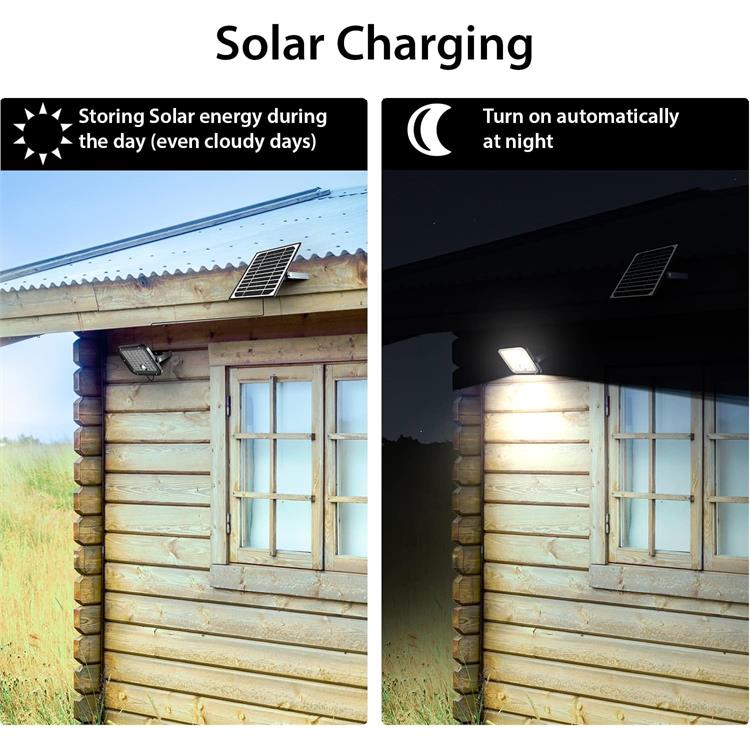 Il pannello solare e il proiettore sono separati e collegati da un cavo lungo 5 metri, offrendoti la massima flessibilità nell'installazione. Posiziona il pannello dove riceve più luce solare possibile e installa il faretto dove desideri. Può essere installato in più di 5 modi diversi: faretto a parete, faretto a soffitto, faretto da terra, faretto da lavoro / portatile; montaggio su palo e dove preferisci (come tetto, angoli, semi-interni, capanni, fienili, ecc.).