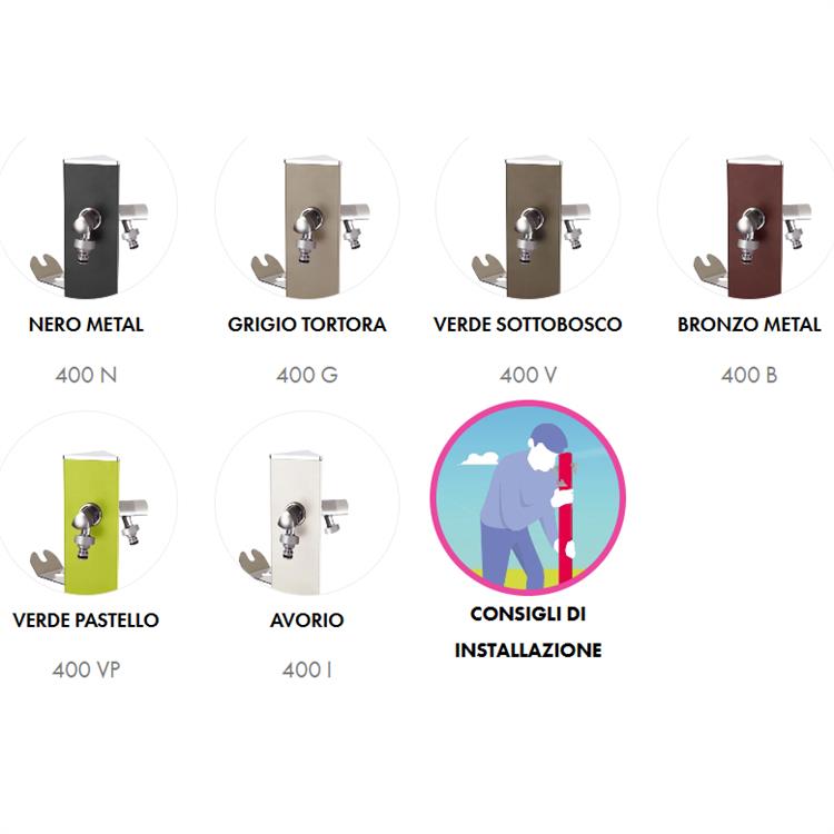 Realizzata con materiali di alta qualità, la colonnina idrica è resistente alle intemperie e ai raggi UV, garantendo una lunga durata nel tempo. Il corpo è in alluminio verniciato a polveri poliestere antigraffio per outdoor, mentre la sella portatubo è in acciaio inox. I rubinetti sono in ottone cromato, un materiale che conferisce un tocco di classe al prodotto.