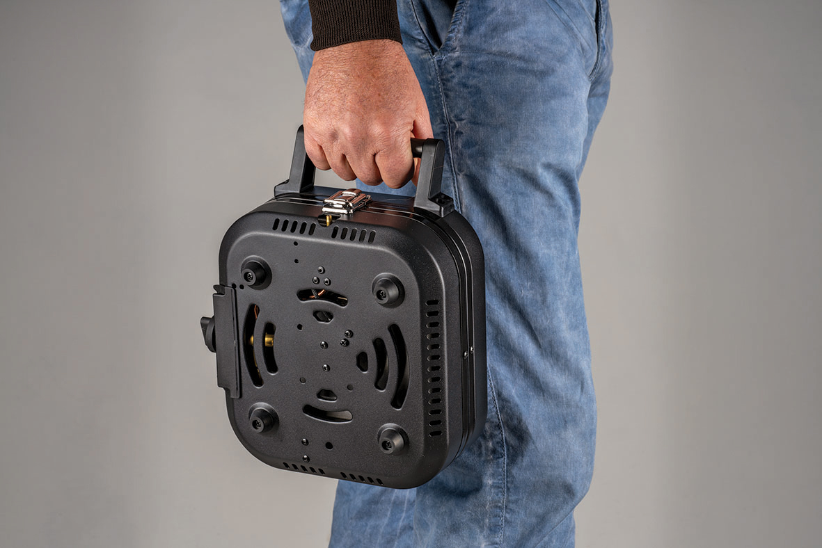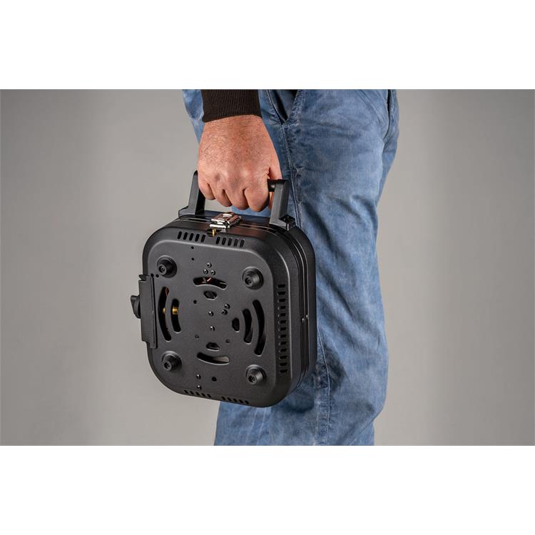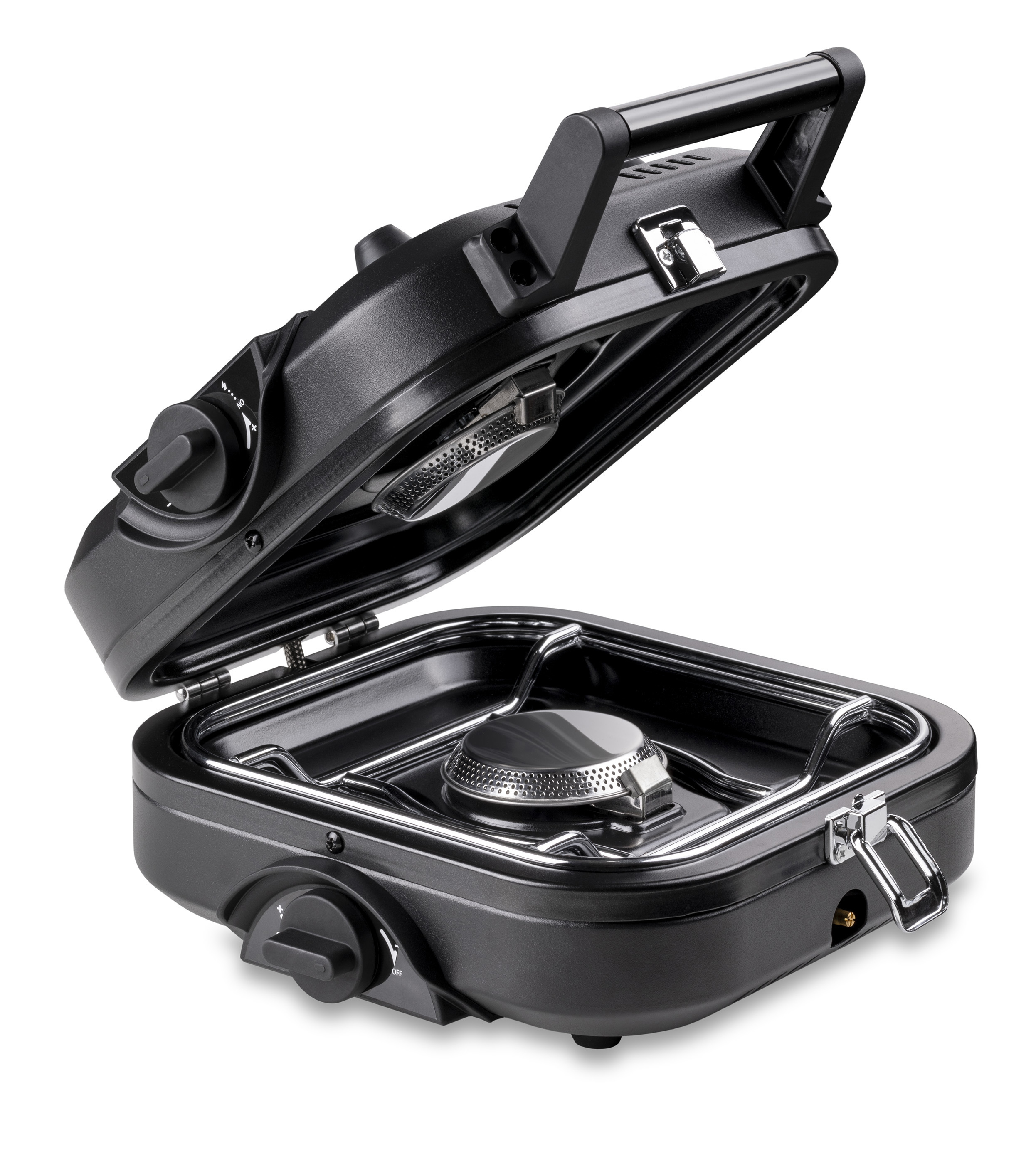 Un aspetto tecnico rilevante è la connessione diretta alle cartucce. Questo fornello portatile a gas è progettato per funzionare specificamente con cartucce a vite Kemper (modelli 1121F e 1126F46) contenenti una miscela di butano e propano. Il design elimina l'obbligo di utilizzare un regolatore di pressione esterno o tubi ingombranti, semplificando notevolmente le operazioni di montaggio e smontaggio. La portabilità è garantita dalla presenza di una maniglia per il trasporto e dalla struttura compatta che, una volta chiusa, occupa poco spazio nel bagagliaio o nell'equipaggiamento da campeggio.
