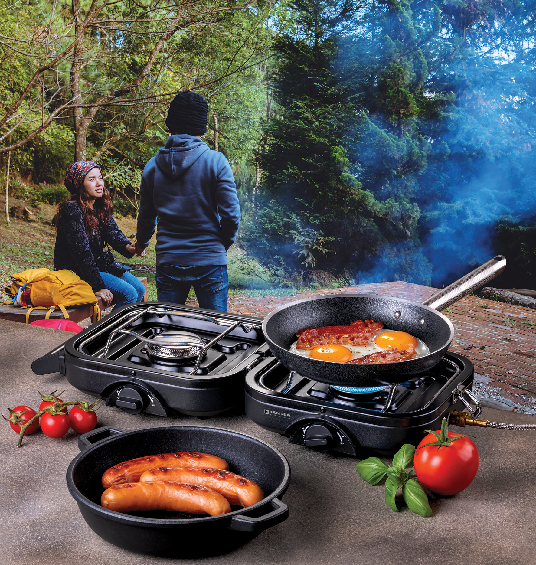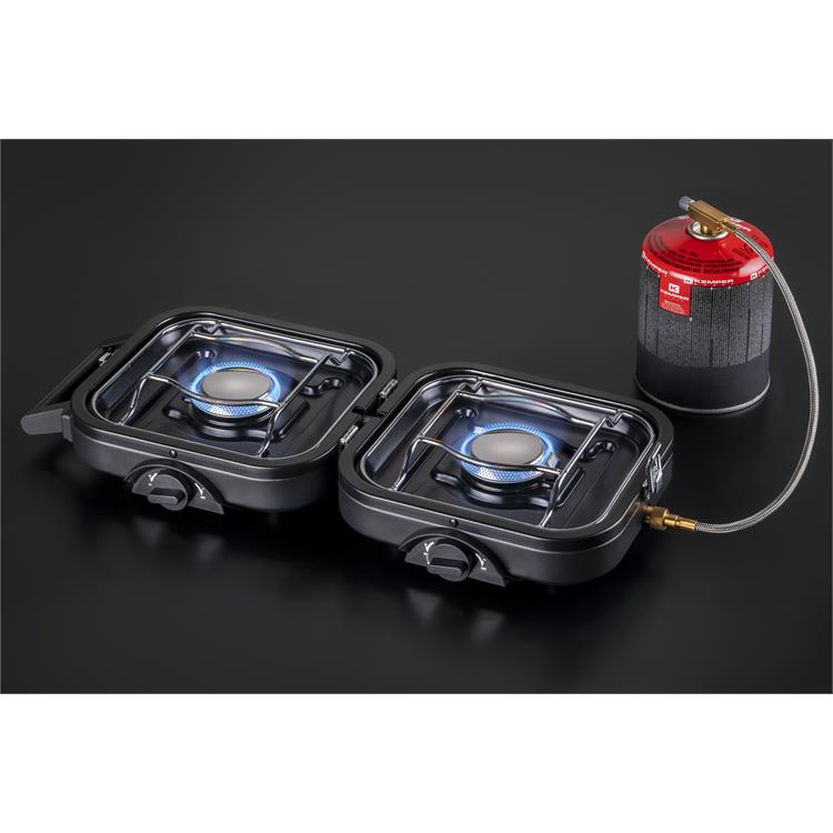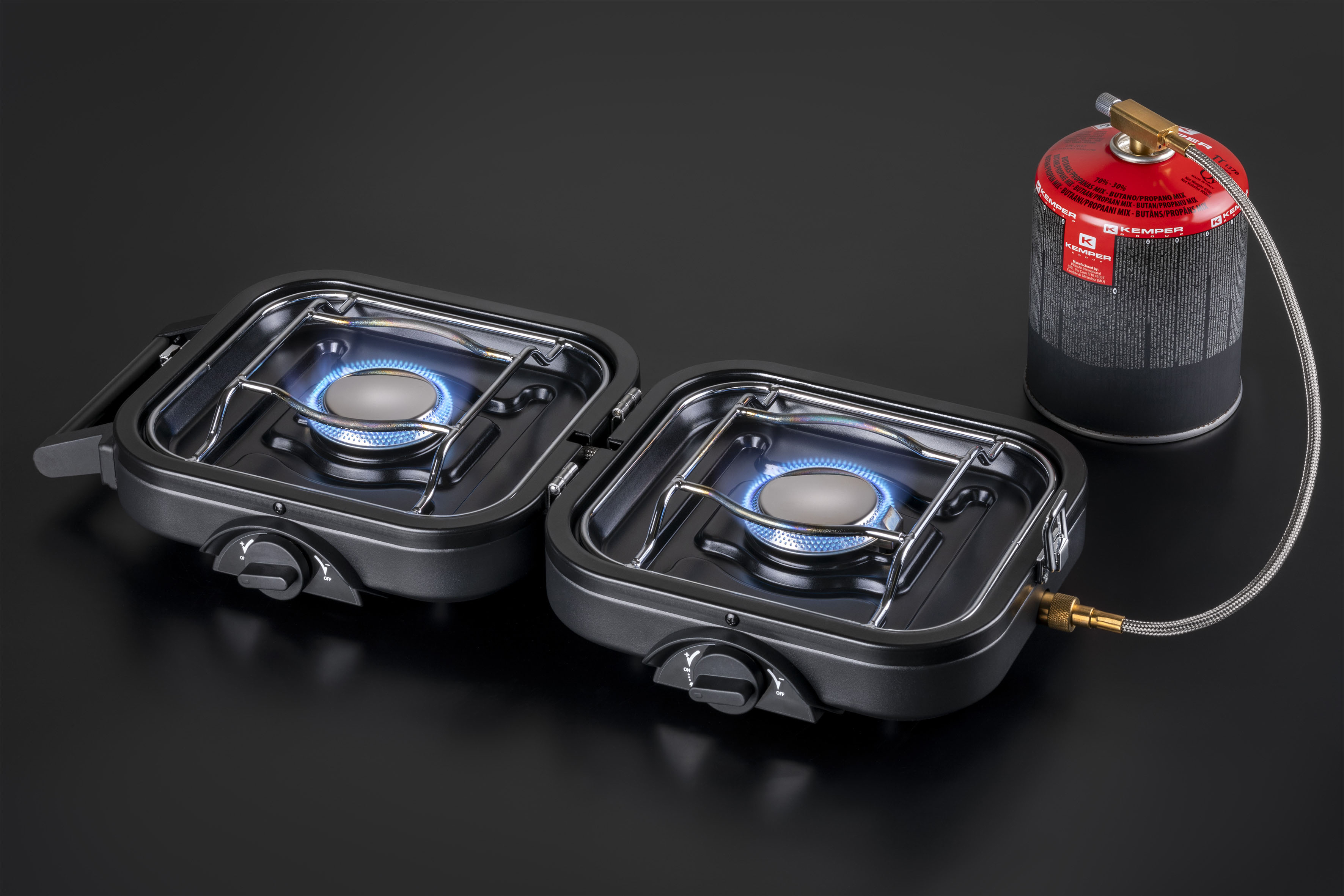 FORNELLO A GAS PORTATILE 2 FUOCHI PIEGHEVOLE KEMPER 104981N NERO