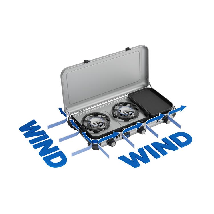 Sfrutta la potenza e la precisione dei bruciatori per preparare primi piatti fumanti, secondi piatti succulenti oppure deliziose grigliate. La tecnologia Flame Guard ti permette di cucinare in sicurezza anche in condizioni atmosferiche avverse, mentre la valigetta integrata rende il trasporto facile e veloce.