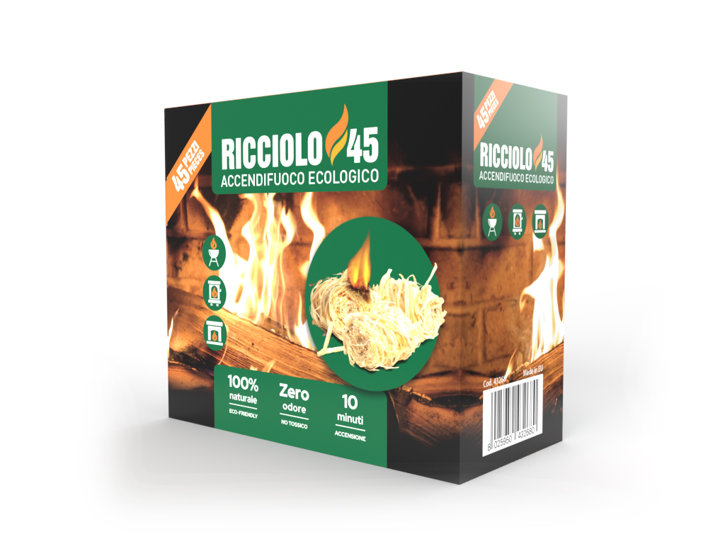 I Ricciolo 45 sono la soluzione ideale per chi cerca un’accensione pratica, rapida e totalmente rispettosa dell’ambiente. Composti da trucioli di legno intrecciato imbevuti in cera naturale, questi accendifuoco eliminano la necessità di utilizzare carta o piccoli legnetti, garantendo una fiamma costante e duratura.