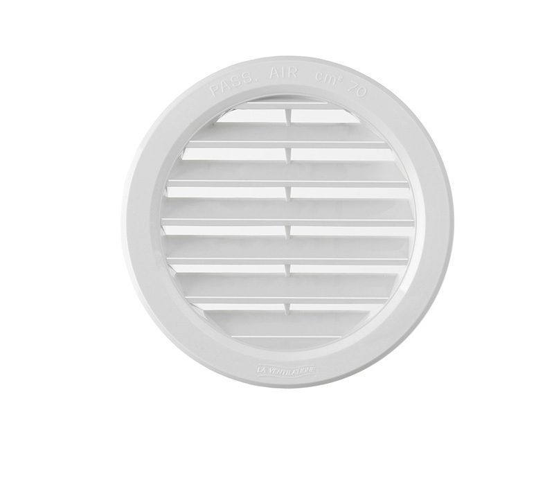 Griglia di aerazione da incasso per foro ø 97 mm, ideale per favorire il corretto ricambio dell'aria in ambienti interni ed esterni.