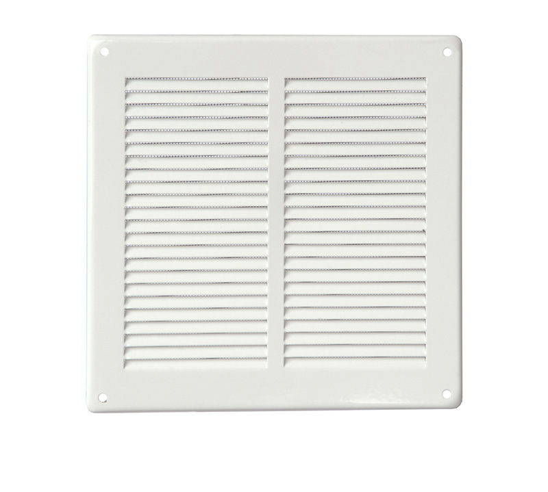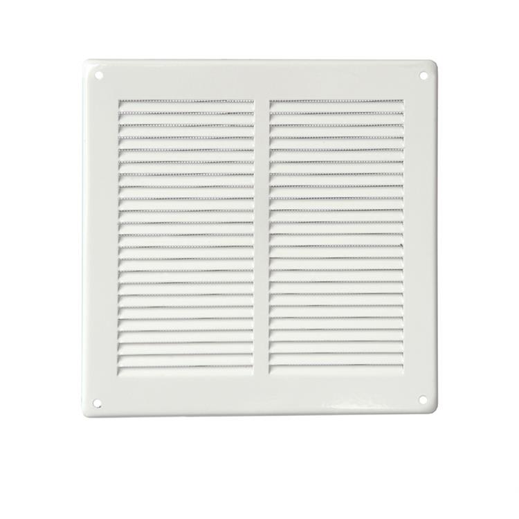 - Caratteristiche: Griglia di ventilazione quadrata in metallo, da sovrapporre completa di rete antinsetti