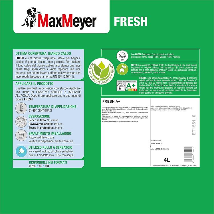 IDROPITTURA LAVABILE TRASPIRANTE FRESH A+ 4LT - MAXMEYER