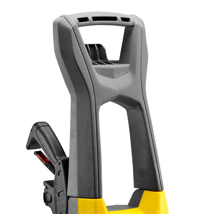 Le caratteristiche principali di questa idropulitrice ad acqua fredda includono un robusto gruppo pompa assiale con testata in alluminio e tre pistoni in acciaio ad alta resistenza, garantendo affidabilità e durata nel tempo. Il sistema Automatic Stop System (ASS) spegne automaticamente la pompa al rilascio della pistola, ottimizzando il consumo energetico e aumentando la sicurezza. L'impugnatura ergonomica assicura una presa confortevole durante l'utilizzo, mentre il pratico vano portaccessori integrato permette di riporre ordinatamente tutti gli ugelli e gli accessori dopo l'uso, riducendo al minimo l'ingombro.