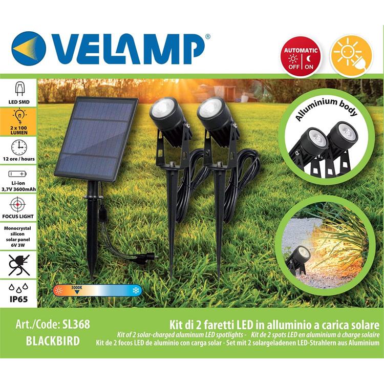 KIT DI 2 FARETTI LED A CARICA SOLARE BLACKBIRD