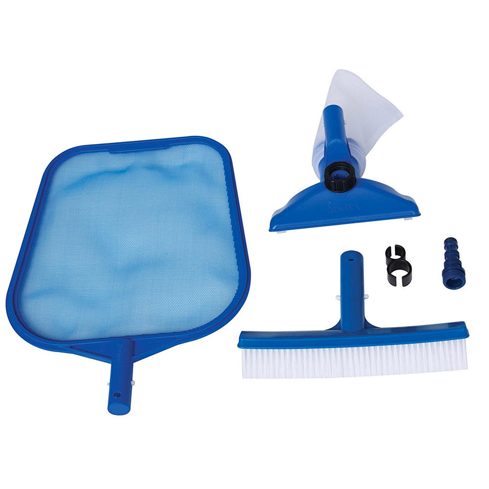 kit pulizia piscina Intex. Questo kit essenziale è progettato per facilitare la manutenzione della tua piscina, garantendo un ambiente pulito e sicuro.