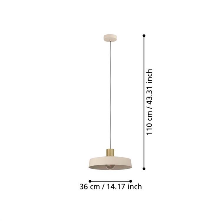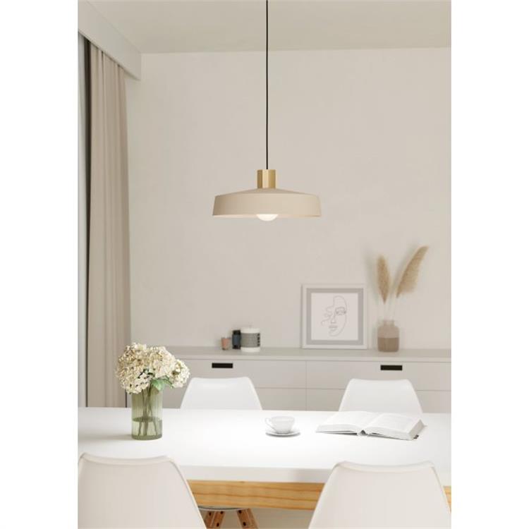 La lampada a sospensione Valdiola di Eglo è un prodotto dal design curato che coniuga estetica e funzionalità. Le sue linee pulite e il paralume rotondo in metallo color sabbia con un inserto in ottone spazzolato la rendono perfetta in ogni ambiente; è dotata di un elegante cavo in tessuto nero e un baldacchino in metallo color sabbia che le consentono di adattarsi elegantemente a diversi stili di arredamento.