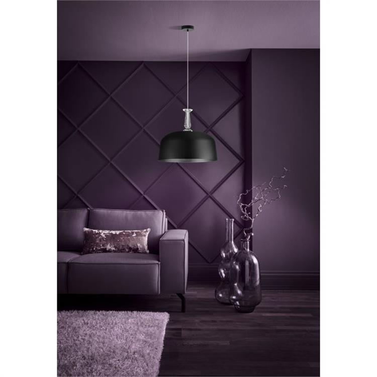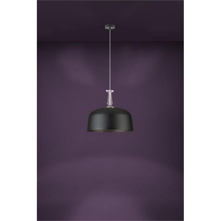 La lampada a sospensione MONTE FUERTE è composta da un paralume rotondo in metallo color nero opaco e da un supporto decorativo in vetro di cristallo. Il supporto in cristallo viene illuminato attraverso l’apertura nel paralume e conferisce alla lampada un look elegante. Questa lampada a sospensione offre una gradevole illuminazione nel soggiorno o nella sala da pranzo. Le lampadine non sono incluse nella consegna. Per la lampada è adatta qualsiasi lampadina con attacco E27.