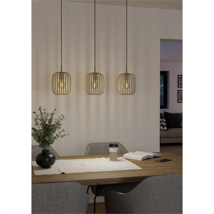LAMPADA A SOSPENSIONE 3 LUCI ROMAZZINA E27 - 90X20X110Hampada a Sospensione Romazzina Eglo: eleganza e minimalismo