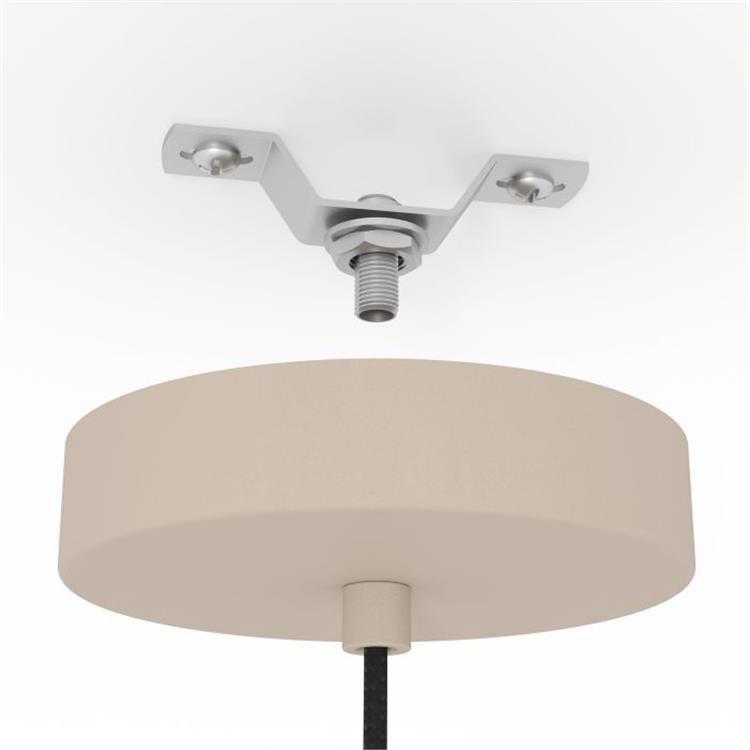 Il paralume, fissato a un baldacchino rotondo in metallo tramite un cavo in tessuto nero. Quando la luce si accende, i montanti verticali del paralume creano un affascinante gioco di luci e ombre che danza sulle pareti circostanti. Questo effetto dinamico e suggestivo dona all'ambiente un'atmosfera calda e accogliente, perfetta per rilassarsi dopo una lunga giornata. La scelta del metallo color sabbia, inoltre, conferisce alla lampada un aspetto contemporaneo e raffinato, che si adatta a qualsiasi stile d'arredo, dal minimalismo al moderno.