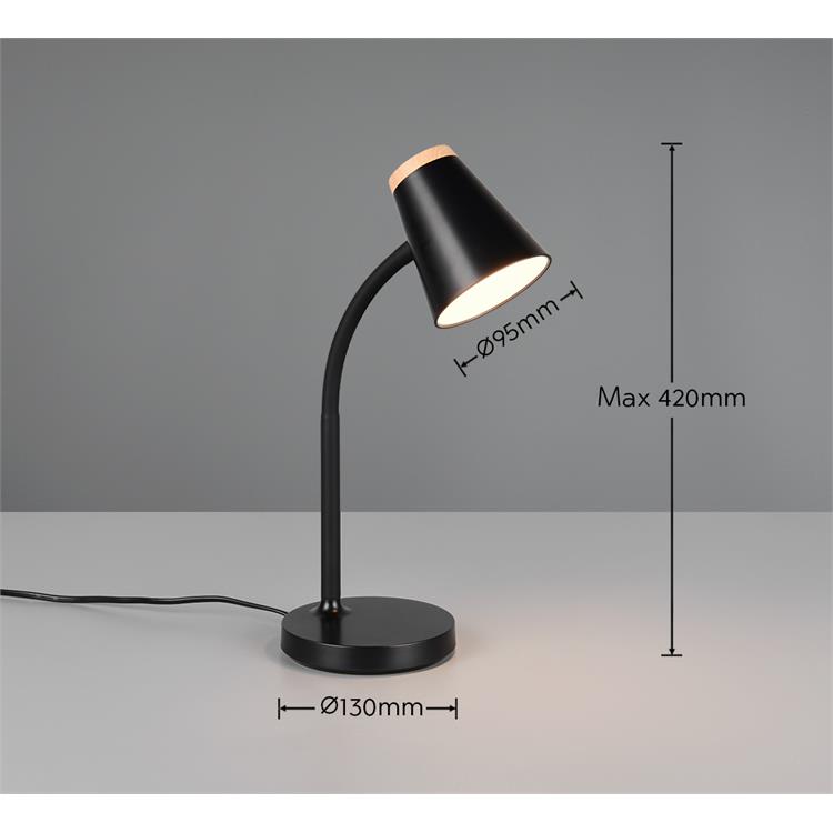 LAMPADA DA STUDIO LED NERA CON BASE - BRACCIO FLESSIBILE - H36 CM - 500 LUMEN - 3000K - PONGO