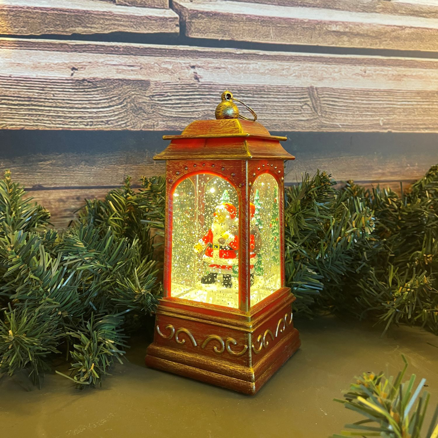 Tipo: Lanterna rettangolare natalizia con glitter e acqua in movimento