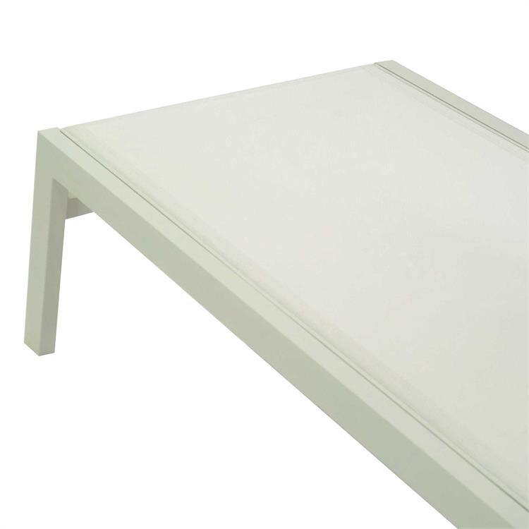 - Lettino prendisole in alluminio verniciato a polvere per resistenza e durabilità.