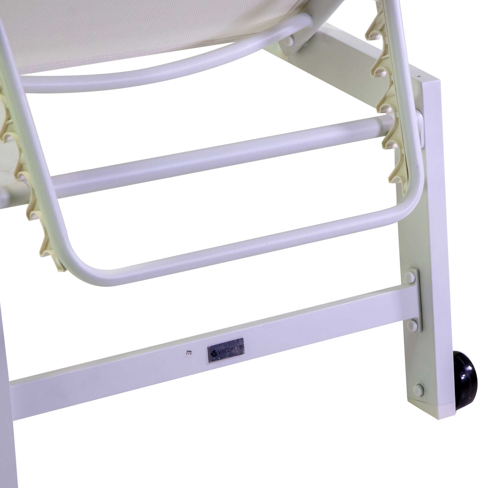 - Tessuto sintetico textilene bianco per comfort e resistenza agli agenti atmosferici.