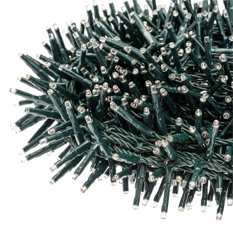 Il trasformatore SELV incluso garantisce la massima sicurezza, mentre il timer integrato ti permette di impostare l'accensione e lo spegnimento automatico delle luci, ottimizzando i consumi energetici. Grazie al grado di protezione IP44, questa catena luminosa è resistente agli agenti atmosferici e può essere utilizzata sia all'interno che all'esterno. Il cavo verde si integra perfettamente con qualsiasi tipo di arredamento e il design discreto delle lampadine MiniLED da 3mm valorizza al massimo le tue decorazioni natalizie.