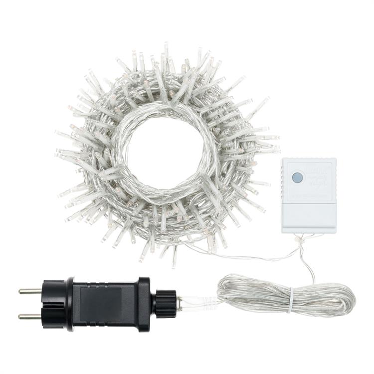 Il timer integrato ti permette di impostare l'accensione e lo spegnimento automatico delle luci, così non dovrai preoccuparti di nulla. Inoltre, il cavo trasparente si adatta perfettamente a qualsiasi ambiente, garantendo un effetto visivo pulito ed elegante.