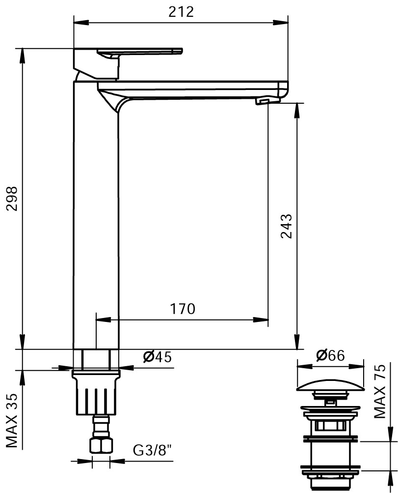 2. MISCELATORE LAVABO ALTO MONOCOMANDO SERIE MAIBEL